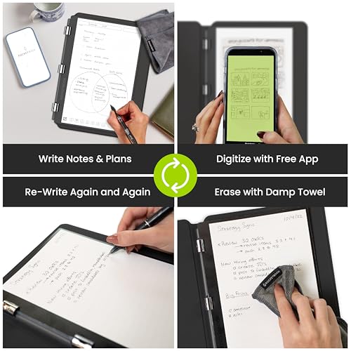 Write, Digitize, Erase, and Reuse: Write with the included FriXion erasable gel pen, scan and save your notes digitally in your cloud destination of choice with the Rocketbook app, and wipe clean with the included towel and water to reuse again and again.