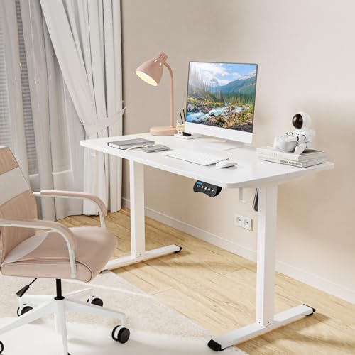 MOUNTUP Electric Height Adjustable Standing Desk, 48 x 24 Inches Sit Stand Desk with Memory Controller, Ergonomic Stand Up Desk for Home Office with Splice Board, White